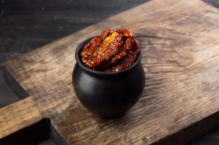 Чтобы качество сушеных помидоров было лучше, их окуривают сернистым газом (1г серы на 1кг томатов) в течение 30 минут. Сжигают серу под ящиком с помидорами. После окуривания их выставляют для сушки на солнце. Сушат помидоры в течение 5-8 суток, периодически переворачивая. Сушеные томаты перед употреблением надо только промыть. Они являются хорошей заправкой для борщей и соусов.
