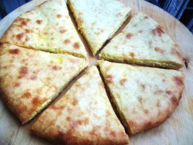 Хабисгини (осетинский «хачапури») – тонкие и большие по диаметру лепешки с начинкой из картофеля сыра и яйца.