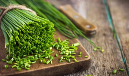 Базовая нарезка предполагает обычное измельчение лука. Нарезать его лучше скользящим движением, используя всю поверхность лезвия, а не только кончик ножа. Движения должны быть уверенными и четкими. Попробуйте нарезать таким образом небольшой пучок лука.