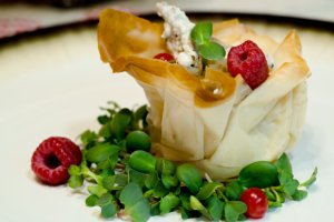 У тісті філо якраз немає тривожного поєднання вершкового масла, яєць і дріжджів з борошном та солодкою начинкою. Його прісний характер відмінно доповнює внутрішній зміст, на яке звернено основну увагу та яке дає простір вашій уяві. Строго кажучи, не дивлячись на присутність тісту та начинки, найніжніші створення з філо пирогами назвати неможливо.