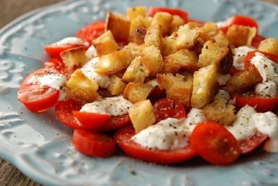 Помидор режем соломкой, сырок натираем на терке, зелень и чеснок измельчаем. Добавляем сухарики и майонез, чуть-чуть соли и перца и хорошо все перемешиваем.
