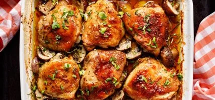 - Смазываем форму для запекания растительным маслом, выкладываем окорочка и отправляем в разогретую до 180 градусов духовку на полчаса.