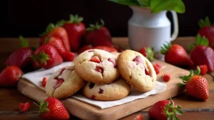 В сезон клубники невозможно удержаться от разнообразных десертов с любимой ягодой. Предлагаем сегодня близким приготовить печенье с клубникой — такое вы точно не купите в ближайшем супермаркете.