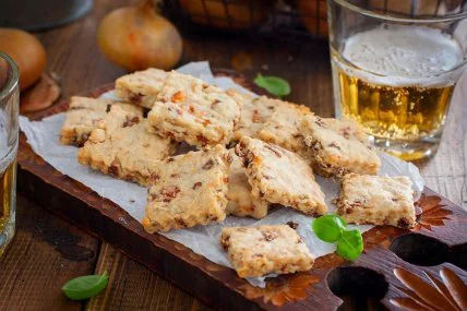 Прекрасная закуска к посиделкам с друзьями: приготовьте луковое печенье на пиве