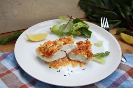 7.Накрыть рыбу смоченным пергаментом и запекать в предварительно разогретой до 200 градусов духовке около 30 минут.