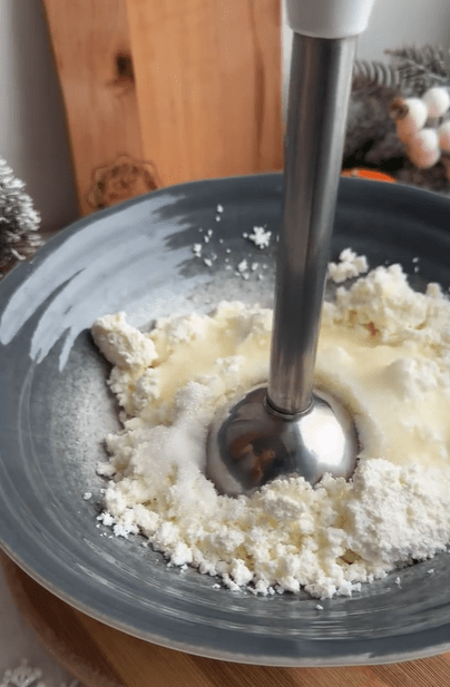 2.Приготовить творожную начинку, смешав все ингредиенты и перебить погружным блендером.