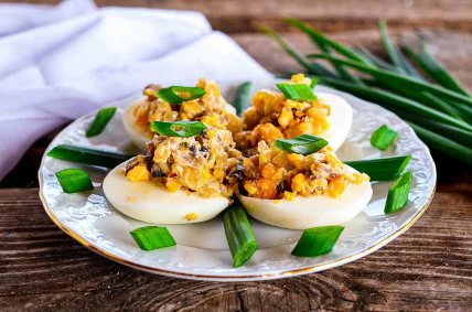 Как приготовить яйца фаршированные грибами