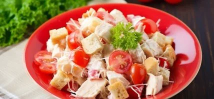 Как приготовить салат с копченой курицей, перцем и сухариками