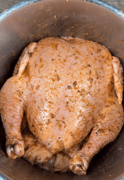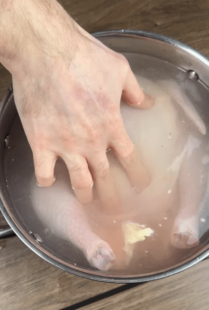 1. Сделать солевой раствор смешав соль и теплую воду. Окунуть туда курицу и оставить как минимум на пару часов или на ночь.