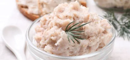 В кулинарном блоге _tanyushina_ рассказали, как приготовить его из копченой (или запеченной) скумбрии. Это очень быстрая в приготовлении закуска, чем-то напоминающая паштет, однако имеющая неоднородную консистенцию, где встречаются кусочки. Поэтому продукты нужно нарезать, а не перебивать блендером.