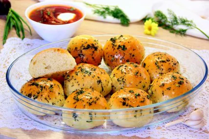 Пампушки — это классическая украинская вкусняшка, которую подают к горячему, ароматному борщу. Пышные, нежные внутри и с хрустящей корочкой снаружи, они идеально сочетаются с насыщенным вкусом супа.