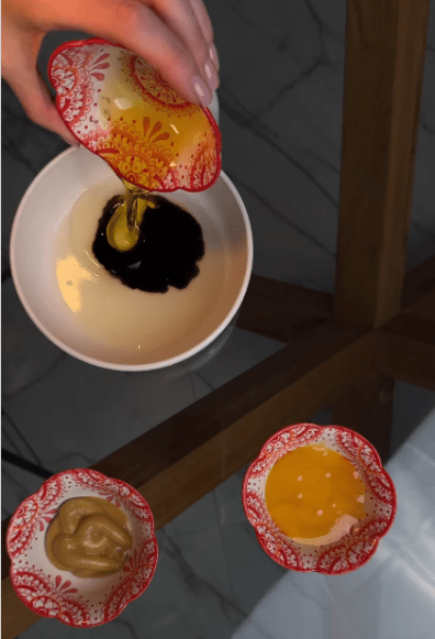 1.Для приготовления маринада смешать лимонный сок, мед, соус терияки, горчицу и оливковое масло.
