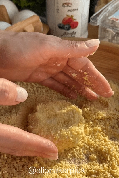6.Обкатать в перебитых в блендере кукурузных хлопьях или муке, обжарить с обеих сторон.