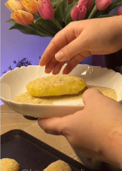 6. Сформированные зразы нужно обмокнуть в панировочных сухарях и обжарить с обеих сторон на растительном масле до золотистой корочки.