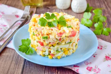 Традиционный салат с крабовыми палочками – это классика, которая уже давно заняла почетное место на наших столах. Его обычно готовят с рисом, яйцами, консервированной кукурузой и, конечно же, заправляют майонезом.