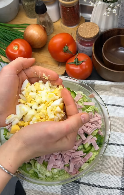 Легкая и сочная, она отлично сочетается со многими ингредиентами, создавая свежие и аппетитные блюда. Один из таких простых и вкусных вариантов — салат с пекинской капустой, ветчиной и огурцом, который готовится быстро и вкусно легко и празднично. Рецептом с нами поделились на Instagram-странице "katia_cooking_".