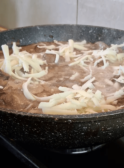 6. Натереть сыр и добавить его в печень, перемешать. Как только сыр расплавился – блюдо готово.