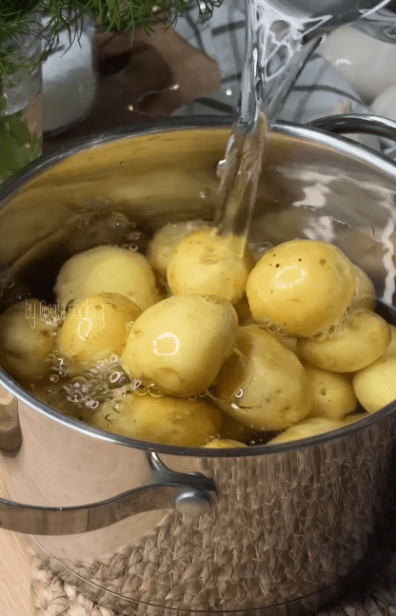 4. Выложить картофель в подсоленную воду и варить до готовности 10-15 минут в зависимости от размера.