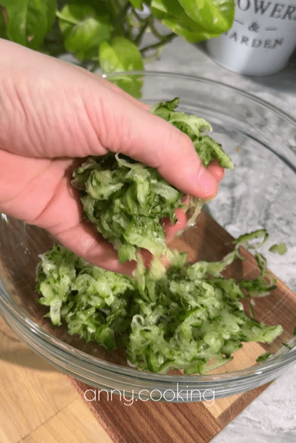 Натереть огурцы на мелкой терке, отжать лишнюю влагу.