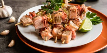 Сейчас самый сезон ароматных пикников и сочных шашлыков – их готовят из разных видов мяса, экспериментируя с пряностями и маринадами. Сегодня мы предлагаем отойти от классики и попробовать нежный шашлык из красной рыбы.