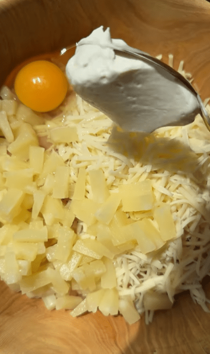 1. Куриное филе нарезаем небольшими кусочками, солим, перчим, добавляем приправу для курицы, натертый сыр, консервированные ананасы, яйца, майонез или сметану и крахмал.
