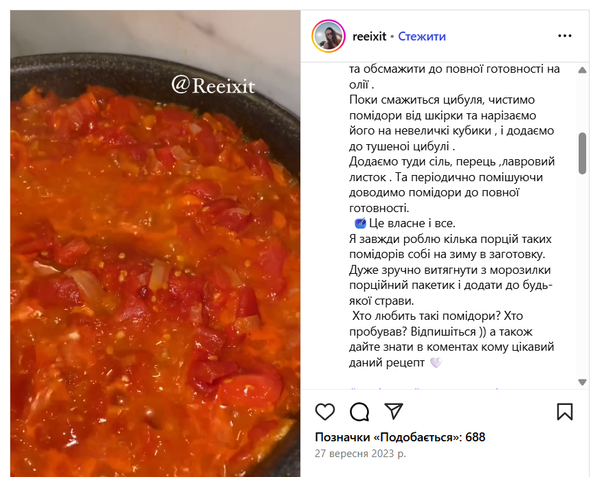 Но сегодня будет несколько иное – тушеные помидоры, которые можно заморозить на зиму. Это не просто удобная заготовка, а настоящая кулинарная основа: добавьте ложку к борщу, подливе, рагу или омлету – и блюдо уже имеет яркий летний вкус. Рецептом с нами поделились на Instagram-странице " reeixit ".