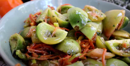 Мы уже рассказывали, как приготовить квашеные зеленые помидоры на зиму. Но если хочется есть их уже сейчас, то стоит попробовать рецепт зеленых помидоров по-корейски. Буквально за ночь в холодильнике помидоры пропитаются ароматами специй, станут сочными, пикантными и невероятно аппетитными.