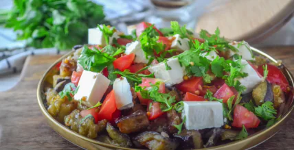 Когда огород радует свежими овощами, самое время приготовить что-нибудь легкое, яркое и вкусное. Салат из хрустящих баклажанов, сочных помидоров и солоноватой феты – идеальное блюдо, чтобы утолить голод и разнообразить свое ежедневное меню. Этот салат можно готовить как дополнение к обеду или легкий ужин, уместным он будет и на праздничном столе. Подавать салат лучше сразу после приготовления, пока баклажаны еще хрустящие.