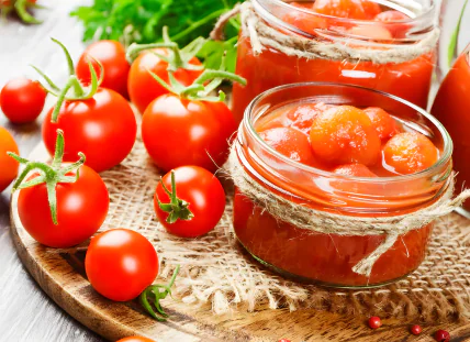 - Плотно утрамбуйте помидоры в чистые банки и закройте крышками.
