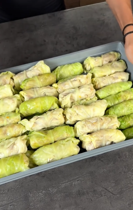 - Начинку заворачиваем в листья обваренной капусты.