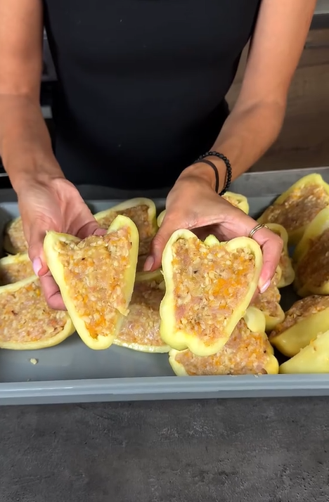 - Начиняем очищенные от семян перцы.