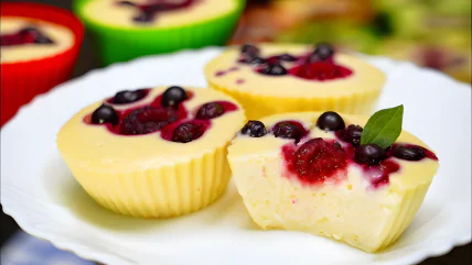 Воздушные мини-чизкейки из творога, сметаны и ягод готовятся очень легко