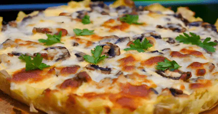 Вкусный пирог готовится без муки, а тесто в нем заменяет картофель