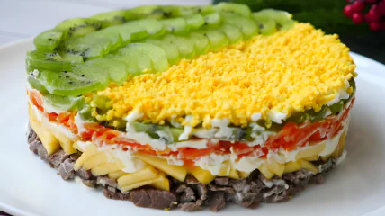 Если традиционные новогодние салаты уже не вызывают восторга, самое время попробовать что-то необычное и свежее. К примеру, салат "Новогодний каприз". В нем удачно сочетаются говядина, киви, яблоки и яйца. Эта закуска не только приятно удивит вкусом, но и привлечет внимание яркой, по-настоящему праздничной подачей.