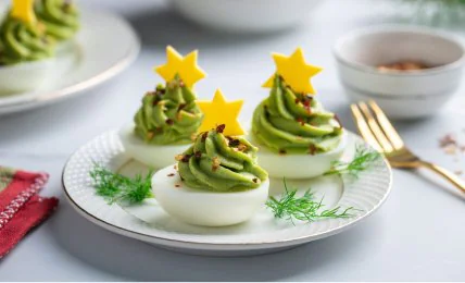 Фаршированные яйца с авокадо на новогодний стол — это яркая, современная и в то же время простая закуска, которая идеально вписывается в праздничное меню. Многие хозяйки выбирают именно такие блюда, ведь они позволяют разнообразить застолье, добавить цвета и удивить гостей новой подачей. К тому же приготовление этого блюда не требует много времени.