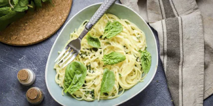 Пасту лучше всего подавать сразу после приготовления, на теплых тарелках, чтобы соус не терял кремовую текстуру. Для подачи подойдут свежая зелень, тертый пармезан или другой выдержанный сыр, несколько капель оливкового масла. Кушанье хорошо сочетается с легким зеленым салатом, запеченными овощами или грилированной курицей, если хочется более сытного варианта. По желанию можно добавить соус песто или острое масло в качестве акцента.