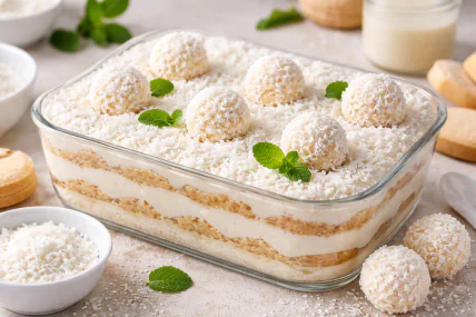 Тирамису "Рафаэлло": классика итальянского десерта с нежным кокосовым ароматом (видео)