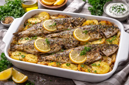 Рыба, запеченная в духовке, — это простое, но очень ароматное блюдо, не требующее сложных ингредиентов. Благодаря сочетанию специй, лимонного сока и соевого соуса оно приобретает глубокий вкус, а картофель впитывает все соки и становится особенно нежным. Рецепт легко менять: вместо прованских трав можно использовать паприку или смесь для рыбы, а часть картофеля заменить другими овощами – например морковью или кабачком. Важный нюанс – не пересушить рыбу, поэтому ее лучше запекать вместе с овощами или под фольгой на первых этапах. Рецептом с нами поделились на Instagram-странице "goodfoodnatalie".
