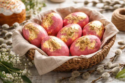 Традиционно на Пасху готовят разнообразные паски и окрашивают яйца, часто выбирая классические оливковые или яркие цвета. Этот ритуал символизирует обновление и праздничную атмосферу, а современные кухни позволяют добавить в него немного креатива. Но сегодня предлагается совсем другой подход: яйца в цвете розового золота, которые смотрятся роскошно, а готовятся просто и быстро. Для наилучшего эффекта важно выбирать свежие яйца среднего размера и качественную свеклу без признаков увядания, а поталь или листовое золото – настоящее или специальное декоративное – переносить осторожно, чтобы не порвать тонкий металлический лист. Идеей с нами поделились на Instagram-странице "_sweetcraft.ua".
