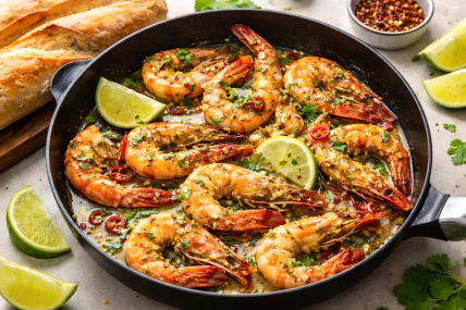 Креветки следует подавать сразу после приготовления, пока соус остается горячим и ароматным. Они прекрасно сочетаются с хрустящим багетом, пастой или отварным рисом, хорошо впитывающим соус. Блюдо можно украсить свежей зеленью и дольками лайма. Также уместно дополнить ее легким овощным салатом или запеченными овощами. Благодаря акции в "Сильпо" это блюдо становится не только вкусным, но и выгодным — хороший повод попробовать что-то новое без лишних затрат.