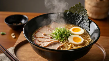 Подавать рамен со свининой лучше всего горячим, сразу после приготовления. Традиционно его едят из глубокой миски.