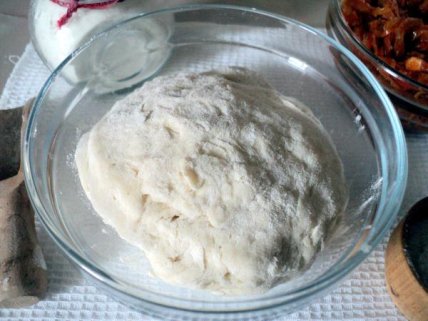 5. В результате замешивания получаем эластичное, податливое тесто, которое хорошо держит форму. Оставляем его отдохнуть на 7-10 минут в теплом месте.
