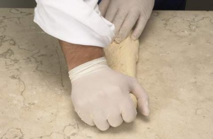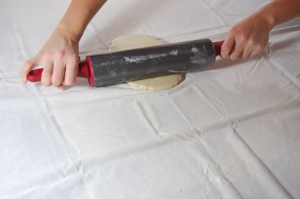 На тонкой ткани присыпанной мукой раскатывайте тесто.