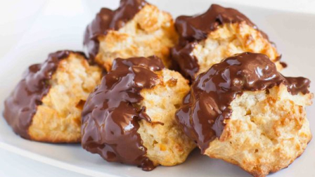Взбить охлажденные яичные белки с щепоткой соли до твердых пиков.Смешайте аккуратно, чтобы белки не опали, со сгущенным молоком.Добавитьк смеси перемолотый миндаль и кокосовую стружку. Сформировать влажными руками из теста шарики, диаметром примерно 3 см и выложите их на противень, застеленный пергаментной бумагой.Выпекать печенье нужно при 180 градусах в течение 25-30 минут.Когда печенье полностью остынет, его можно обмакнуть в растопленный на водяной бане шоколад а потом этот, еще незастывший шоколадный бочок, присыпать мелко раздробленными фисташками или орехами.Читай также: Кекс шоколадный на Масленицу