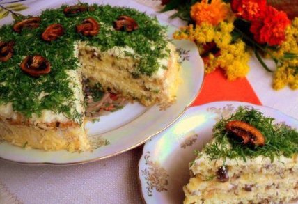 Грибной бисквитный торт