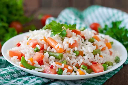 Рис с овощами не только вкусное и полезное блюдо, но еще и потрясающе красивое, поэтому может с достоинством занимать самые почетные места на любом праздничном столе.