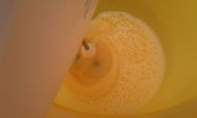 1. Первым делом выпекаем белковые коржи из яиц. Для этого берем яйца и взбиваем их блендером. На один корж нам понадобится три яйца, в которые предварительно на свой вкус добавляем соль и перец.