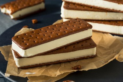 Мороженое-сэндвич — это два удовольствия в одном: хрустящее бисквитное печенье плюс вкуснейшее мраморное сливочно-кофейное мороженое. Этот замечательный десерт - то, что нужно в летнюю пору!