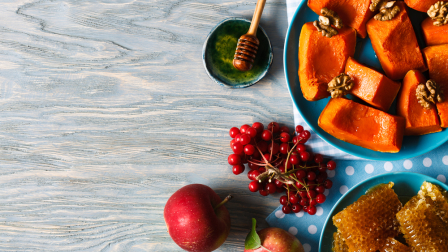 Мега-полезный и ароматный десерт из тыквы и яблок, запеченных с медом и цитрусовым соком, готовится всего несколько минут!