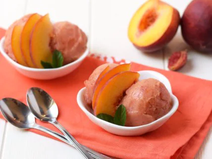 В таку спекотну літню погоду так і хочеться чогось легкого, фруктового і охолоджуючого. Пропонуємо приготувати сорбет з дині і персика. Смачно і дуже просто!
